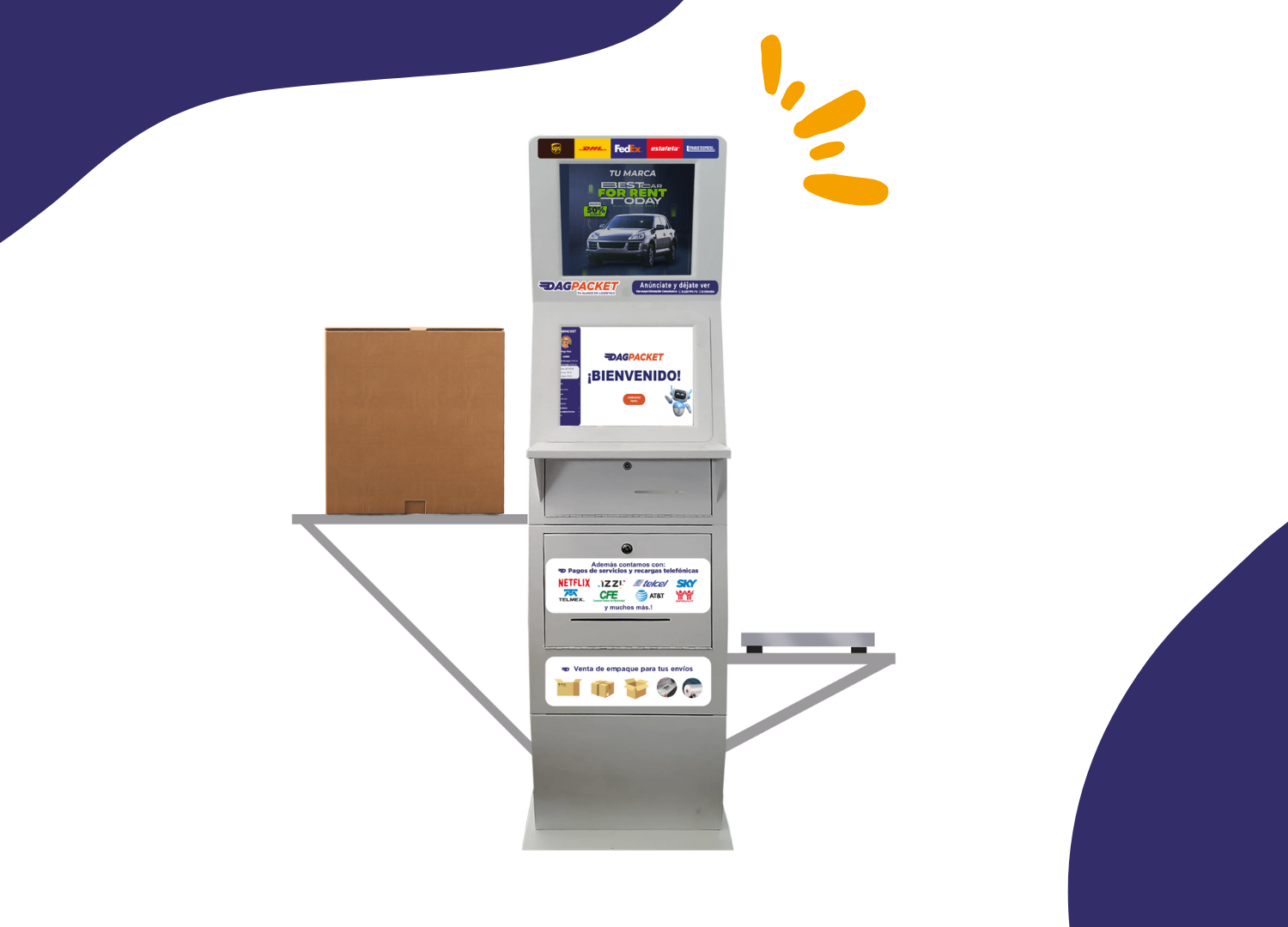Ofrecemos soluciones logísticas avanzadas con nuestros tres modelos de negocio: Franquicia Local, LOCKERS SMART y Kiosco Dagpacket. Un solo punto de autoservicio que ofrecen la solución segura, confiable y accesible sobre envíos/recepción de paquetes y pagos de servicios. 📦